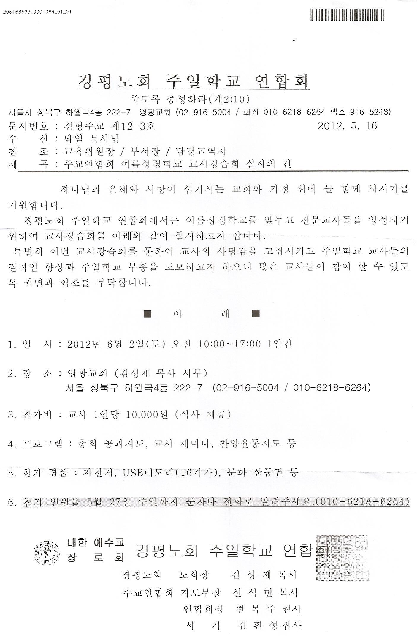주교연합회 여름성경학교 교사강습회 실시의 건